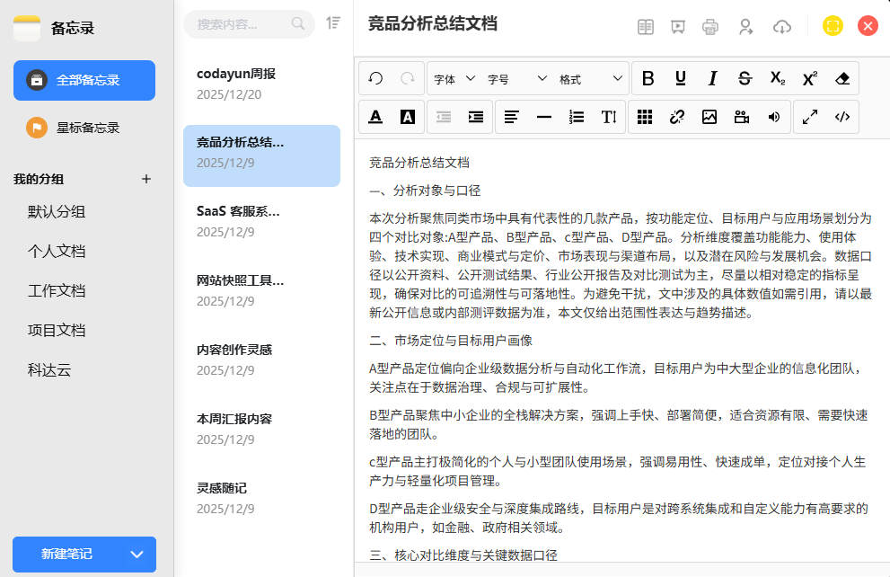 会议记录、灵感随笔,打开就能记。支持导入导出,可创建分享。随时切换演示模式,满足个人和协作需求。