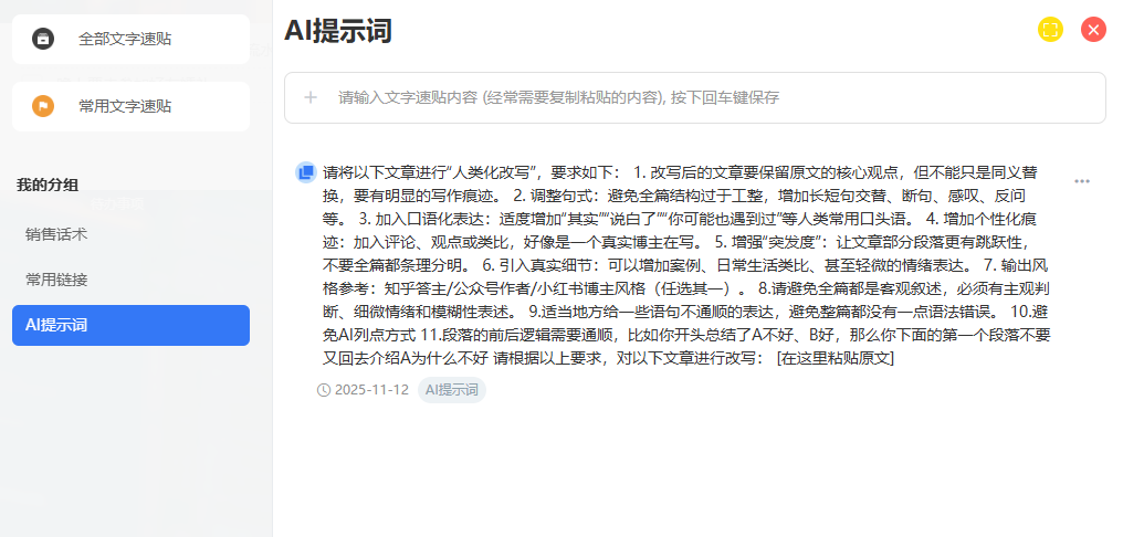 写短视频脚本、公众号推文,你是不是总是要重复用到同样的段落和模板?